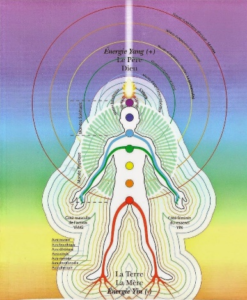 … soutenu par une structure énergétiques, où des corps subtils, méridiens ou nadis, chakras, viennent s’ajouter, formant la structure énergétique, captant l’énergie cosmo-tellurique et ayant pour rôle sa gestion, distribution et répartition de façon équilibrée.